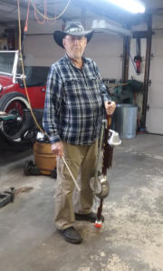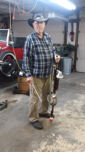 83 years young and he makes them in his garage at home. He uses a lathe to round the